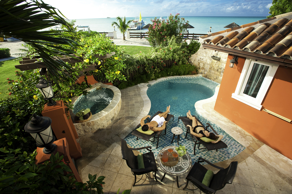 The sensation of a quaint Caribbean Beachfront Grove with lush, tropical gardens highlighted by brilliant bougainvillea combined with luxurious suites incorporating Mediterranean inspired elements both nestled against a powdery white-sand beach. The gardens and landscaping of the Mediterranean Oceanview Village and the refurbished Red Lane® Spa add to the feeling of luxury and romance that permeates Sandals Grande Antigua Resort & Spa.